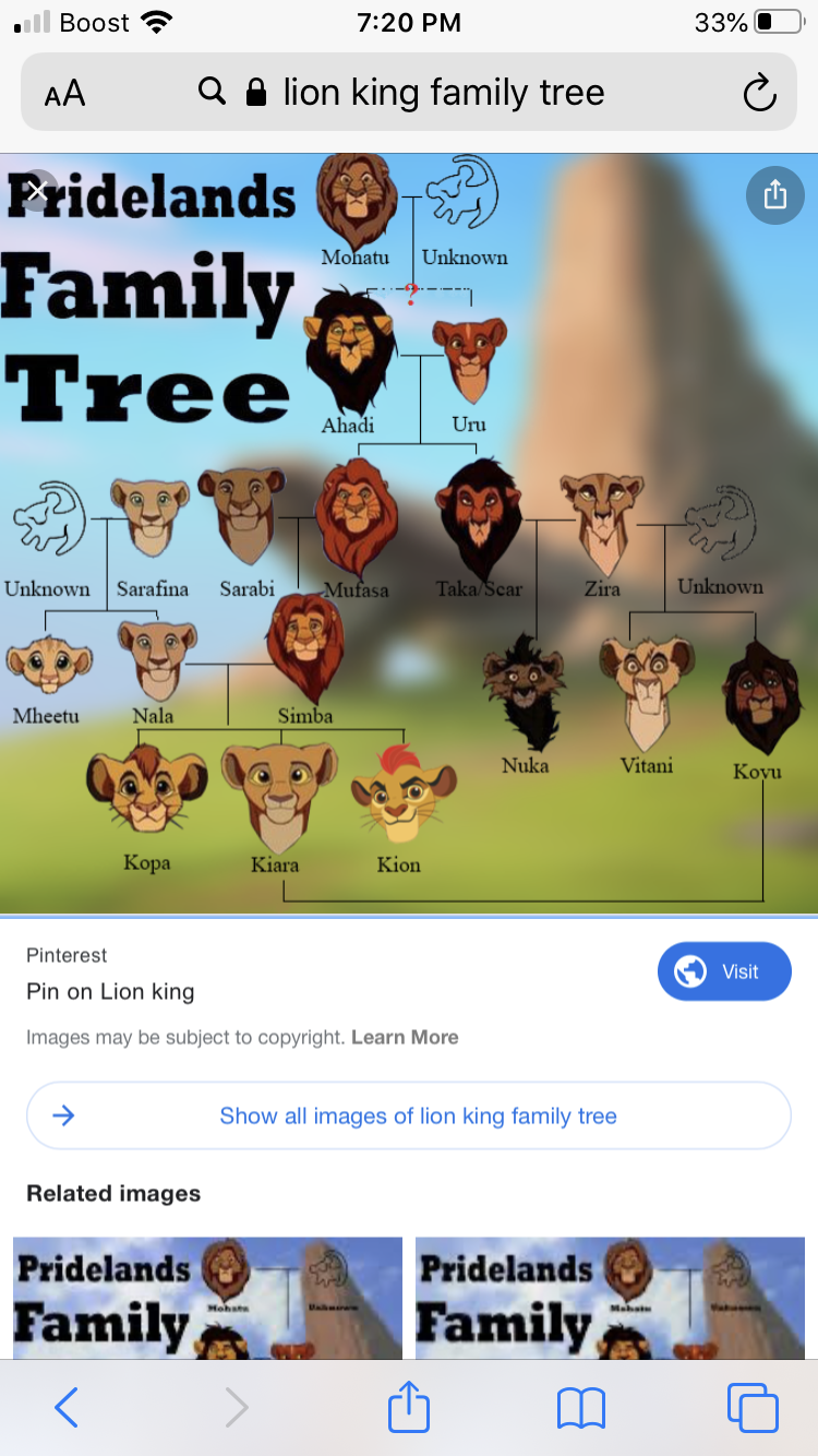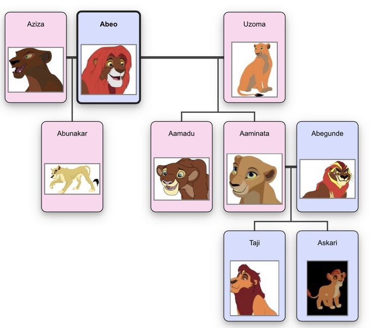 Lion King Family Tree Names. They were banished from the Pride Lands by Simba due to their loyalty to the previous king Scar. The line of succession was passed from Koman to his daughter Uru.